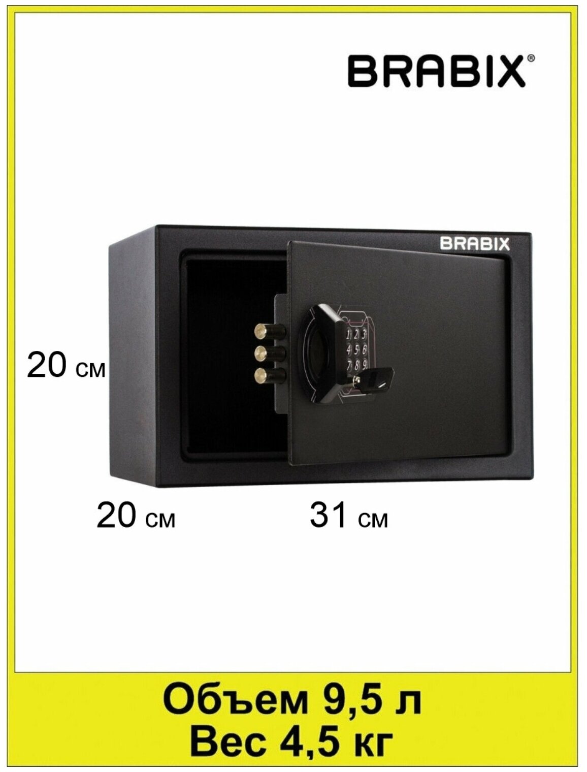 Купить Сейф мебельный BRABIX SF-200EL (в200*ш310*г200мм), электронный замок, черный, 291145