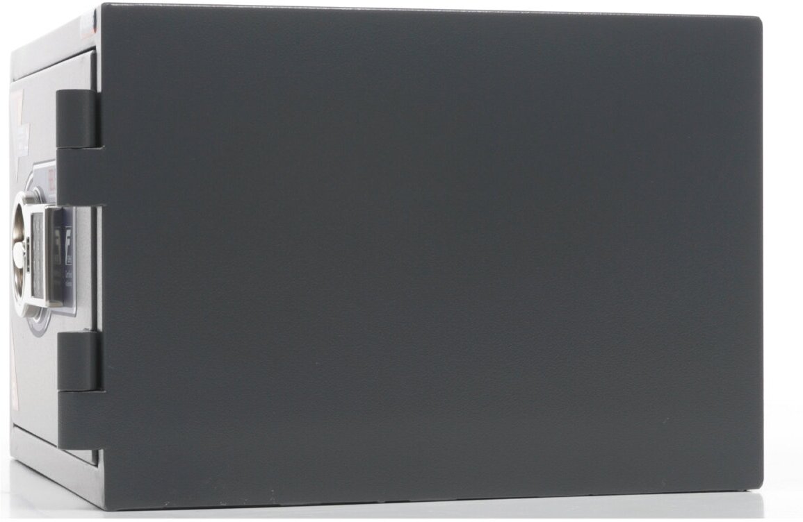 | Плюсы: | Замок работает от кроны. Снаружи есть контакты для запасного питания, если батарейка в сейфе разрядится. Сейф достаточно вместителен, но ноутбук 17' скорее не влезет, чем влезет. |