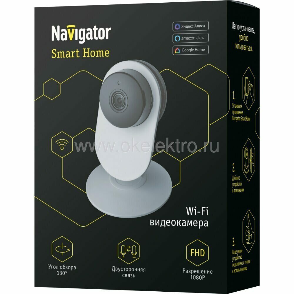 Видеокамера 14 547 Smart Home 130град. IP20 FHD NSH-CAM-02-IP20-WiFi Smart Home | код 14547 | NAVIGATOR ( 1шт. )