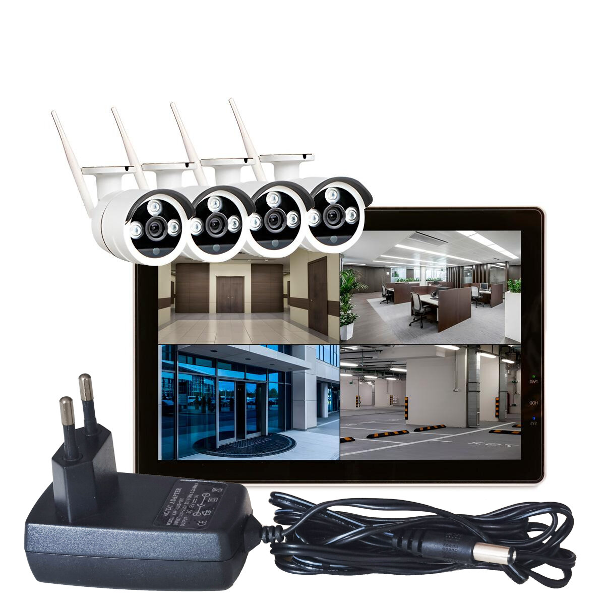 Купить Беспроводной комплект видеонаблюдения Квадро-Вижион-Планшет Модель:5R-Люкс (J386643FX) на 4 камеры 5MP с монитором - удаленное наблюдение