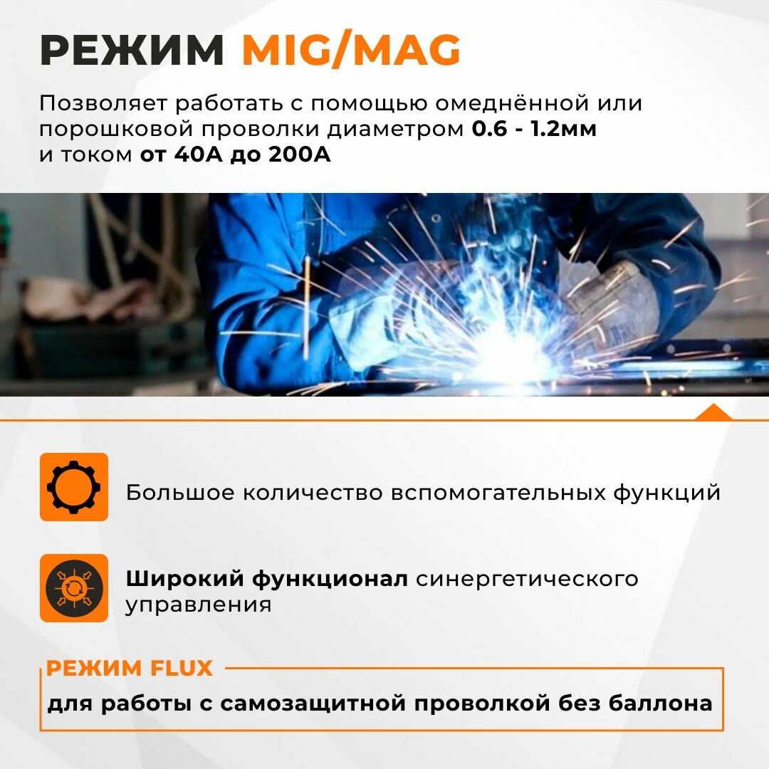 | Сварочный ток (MIG/MAG) | 40-200 А |