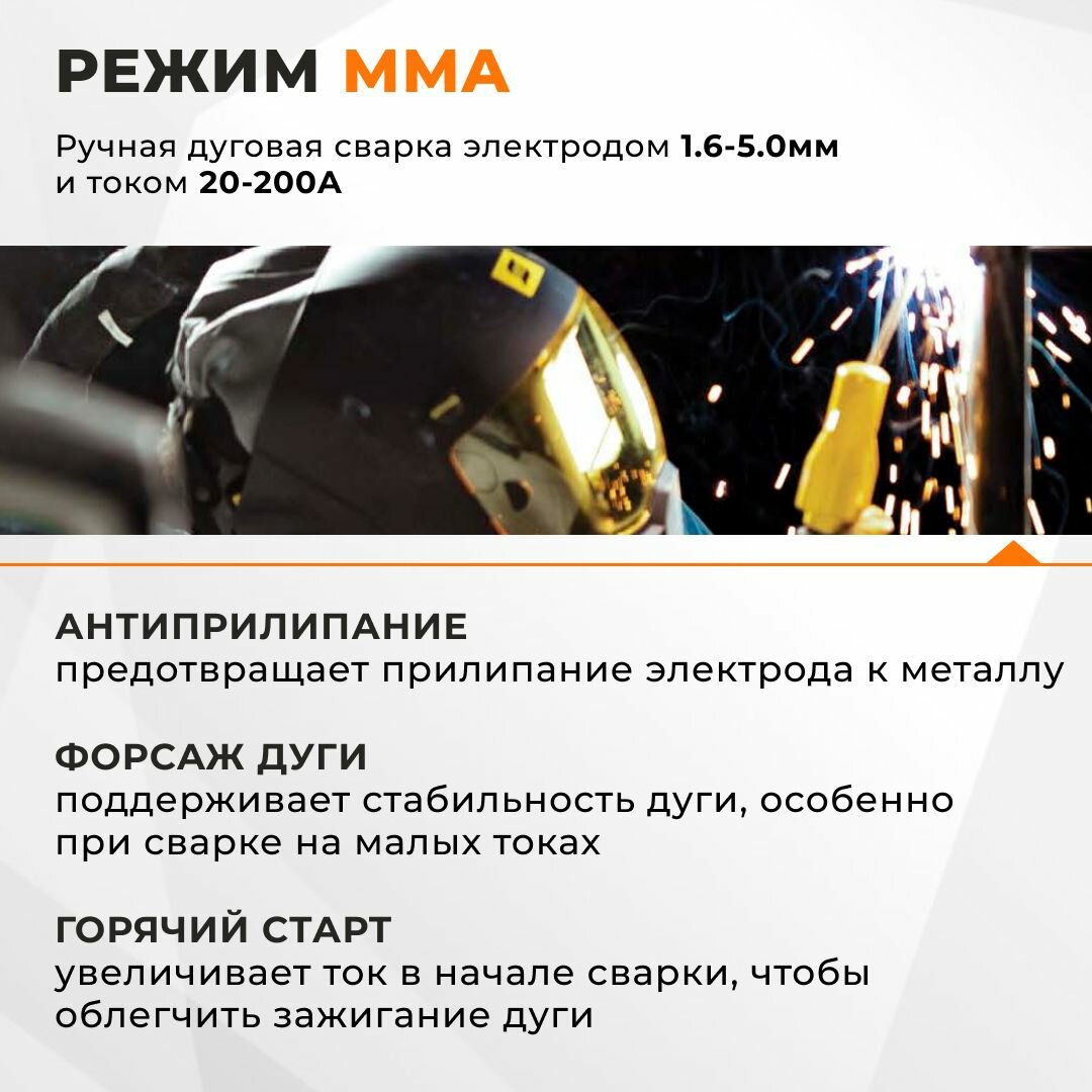 | Дополнительные функции | функция VRD / антиприлипание / горячий старт / форсаж дуги / холодная сварка |