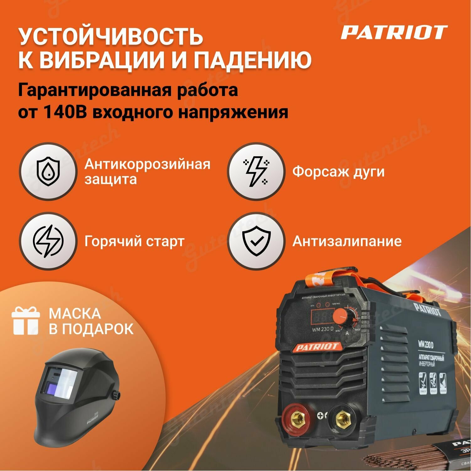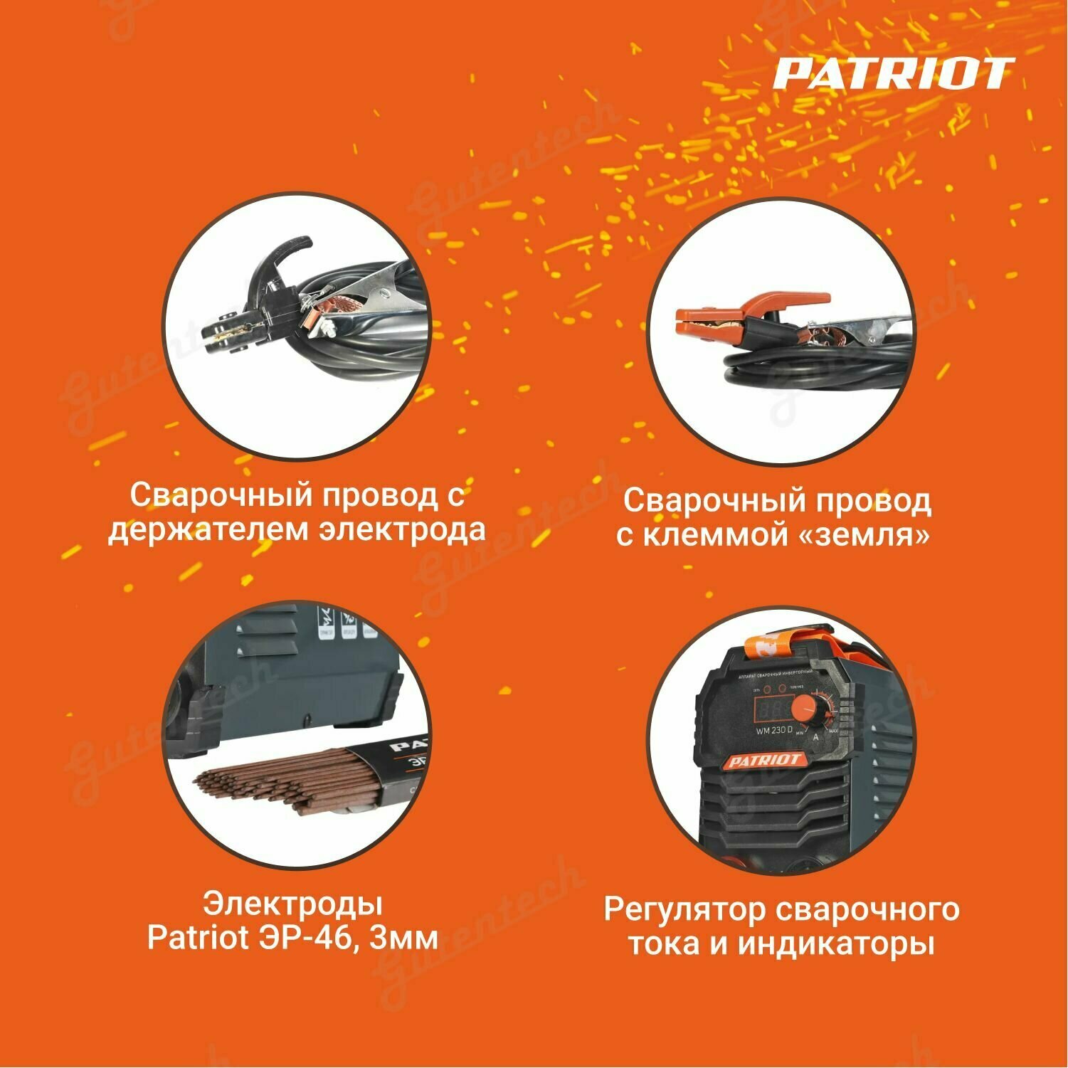 Cварочный аппарат инверторный PATRIOT WM230D MMA + подарок Маска сварщика PATRIOT 311D