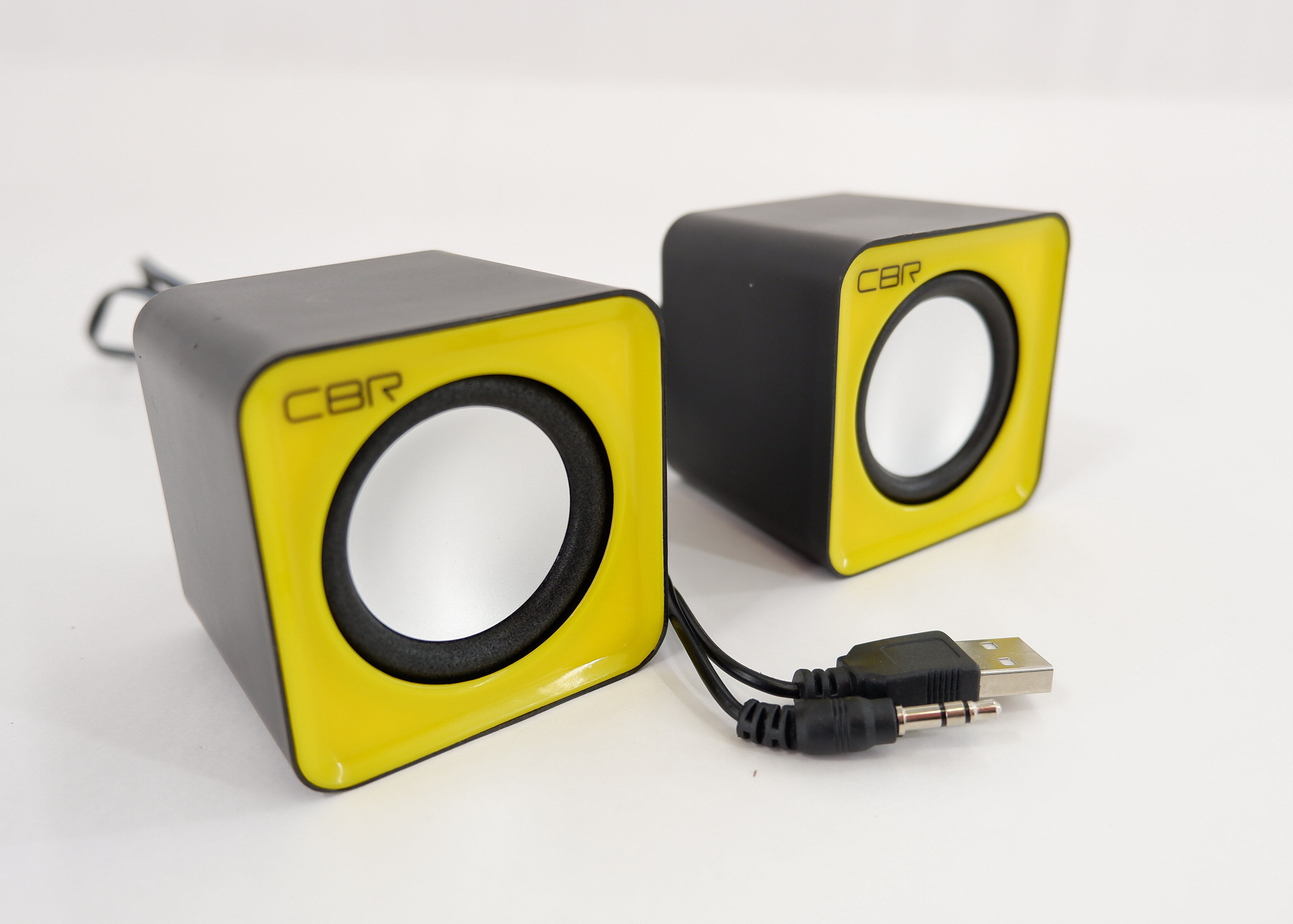 Cbr Колонки CMS 90 Yellow, Акустическая система 2.0, питание USB, 2х3 Вт 6 Вт RMS , материал корпуса пластик, 3.5 мм линейный стереовход, регул. громк., длина кабеля 1 м, цвет жёлтый