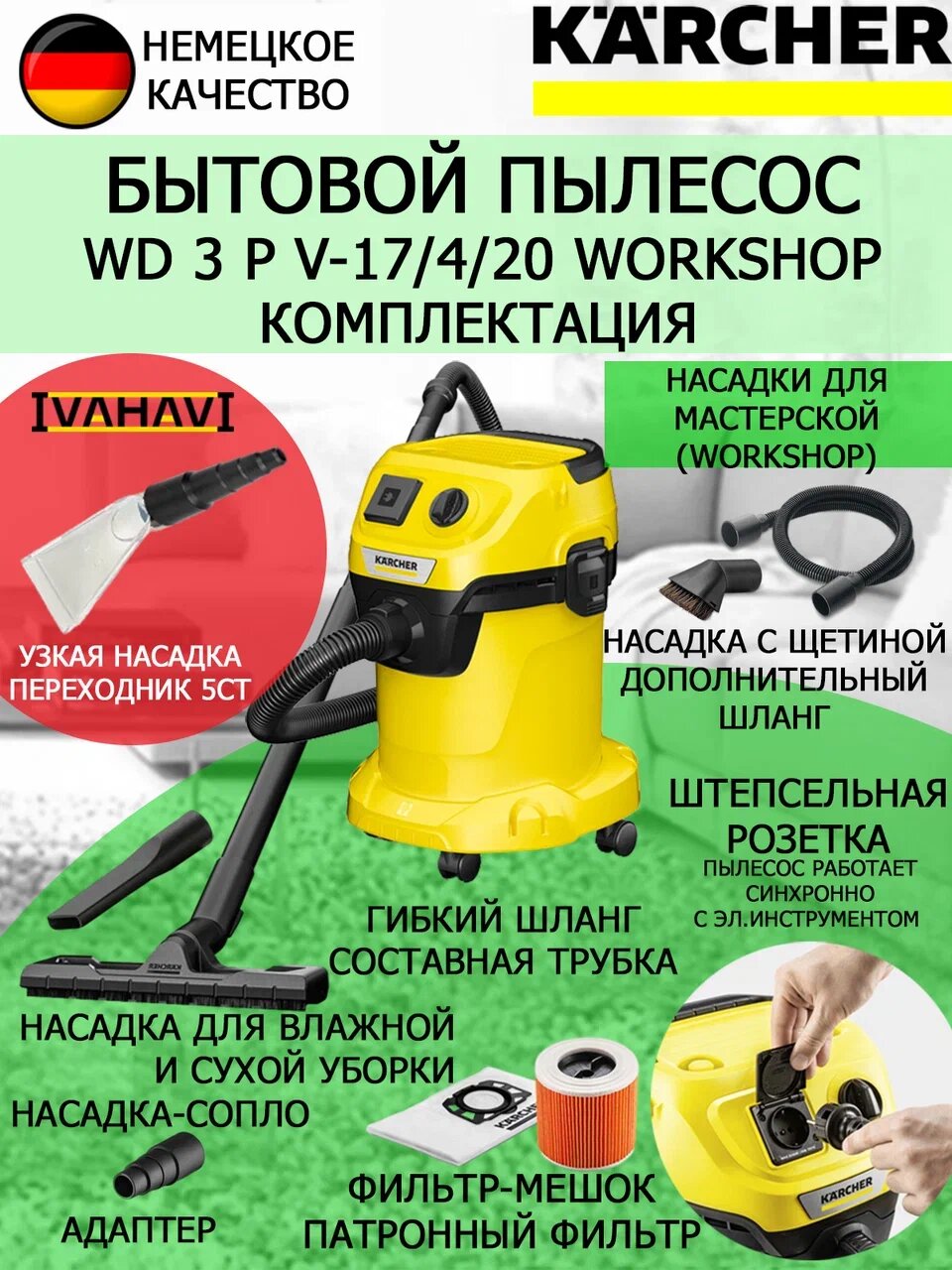 Ниже Вы можете прочитать отзывы на Пылесос Karcher WD 3 P V-17/4/20 (1.628-175.0), ознакомится с подробными характеристиками, посмотреть интересные обзоры и фотографии на Пылесос Karcher WD 3 P V-17/4/20 (1.628-175.0).