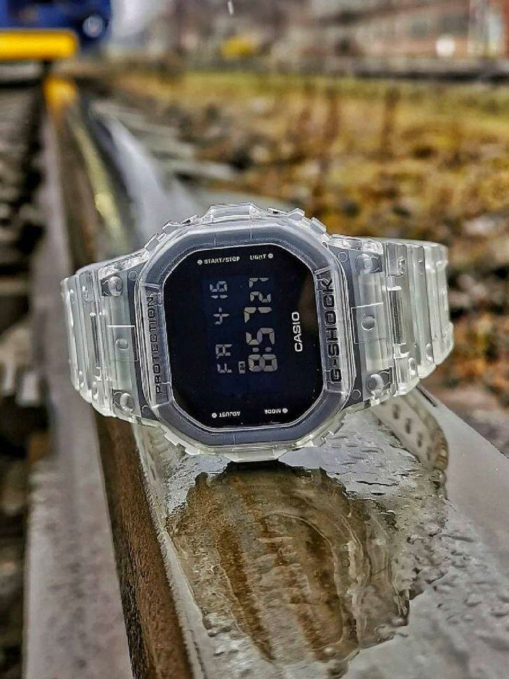 | Плюсы: | Наигрался с умными часами, включая топовые garmin. Сформировалось четкое желание носить простые часы, с защитой и без постоянных уведомлений, синронизаций и прочей ерунды. Модель вживую смотрится просто отлично. Прозрачный пластик с белым отливом м черный экран. Информация читается легко, браслет из полимера. Насколько будет жить в таком состоянии покажет время. Он полностью прозрачный. Будет ли желтеть, посмотрим. Понравилось, что все кнопки утоплены. Занимаюсь спортом, использую подвязки на руках во время занятий. Обычно они продавливали кнопки и всегда что-то нажималось, даже в Гармин за счёт высоты. Тут же просто каеф, низкий профиль решает. Поддержка 24 часового формата. Классический дизайн 5600 серии конечно топ. Доволен, как слон. Рекомендую к покупке в слепую :). Некоторые владельцы на Амазон возвращали аналогичные модели, мол не читается экран. У меня таких проблем нет. Ну и конечно никакого пафоса в дизайне, тоже очень лайк. Часы на каждый день, которые все таки будут вас выделять своим дизайном и обращать внимание на себя |