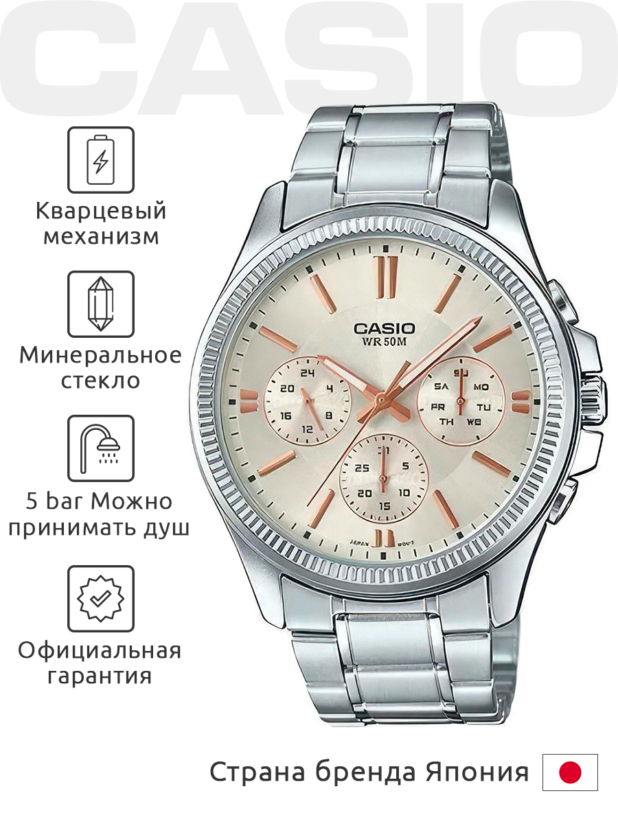 Японские наручные часы Casio MTP-1375D-1A с дополнительными функциями и водозащитой 50 метров