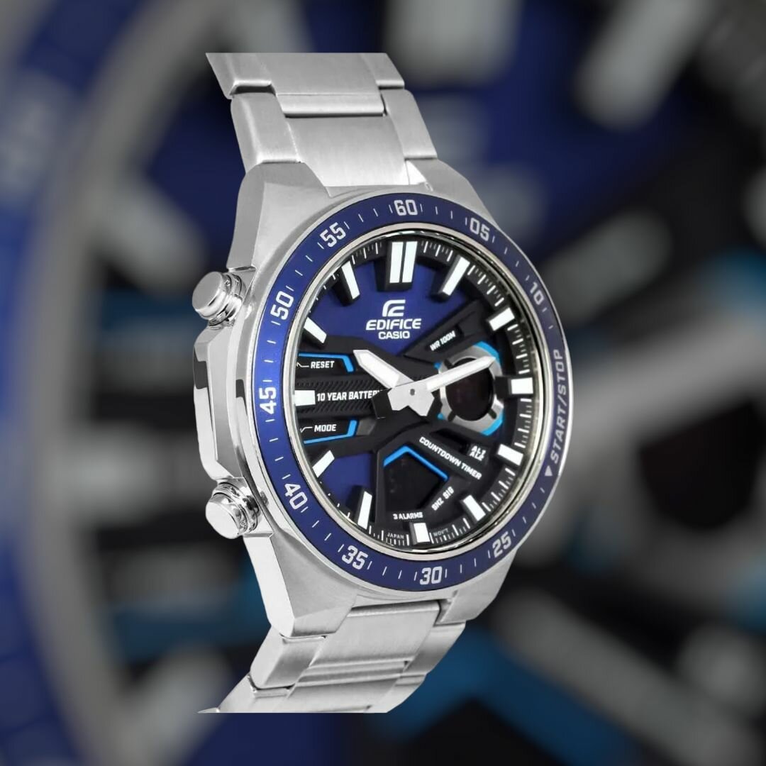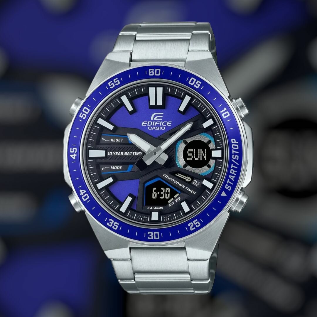 EFR-571DC-2A Casio наручные часы кварцевые WR100 (10 атм) мужские черный, синий отображение числа подсветка стрелок минеральное стекло
