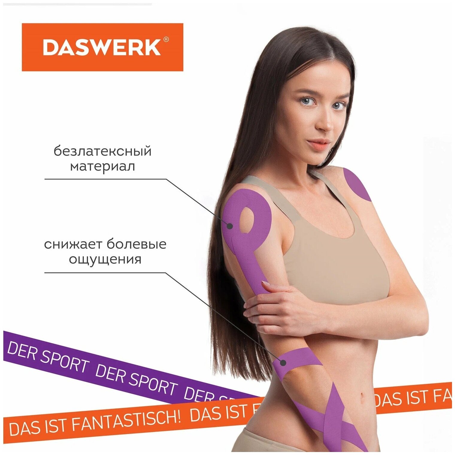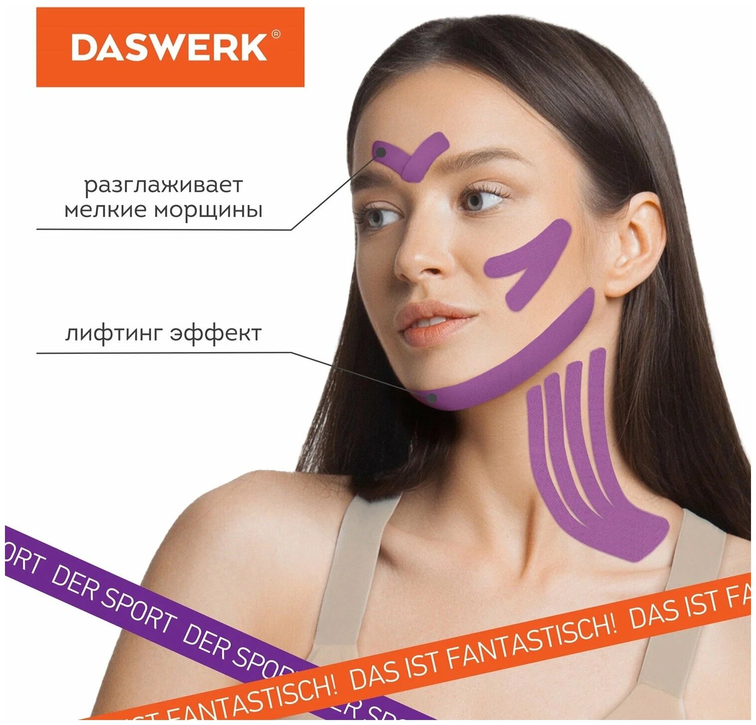 Кинезио Daswerk тейп/лента для лица и тела, омоложение и восстановление, 5 см х 5 м, фиолетовый, , 680005