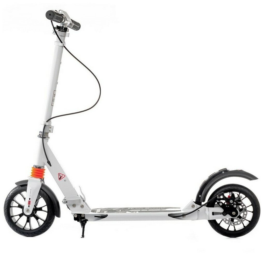 Городской самокат Scooter Disk Brake 2024 с ручным дисковым тормозом и амортизаторами Белый