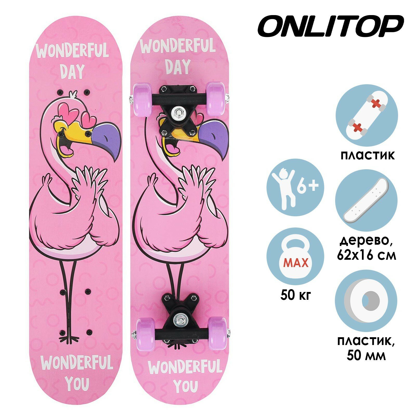 Купить ONLITOP Скейтборд подростковый "Фламинго" 62 х 16 см, колёса PVC 50 мм, пластиковая рама