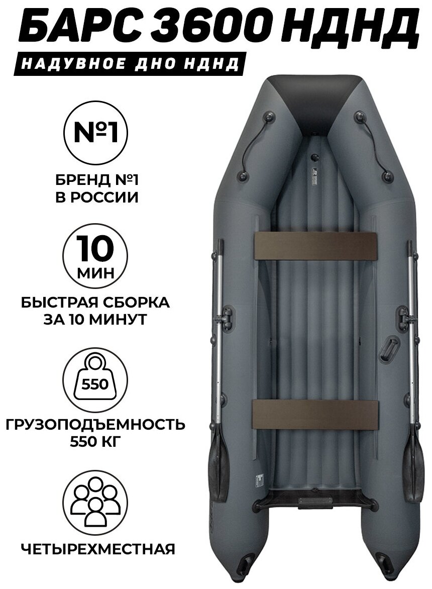 Лодка пвх нднд Барс 3600 под мотор графит/черный интересное: