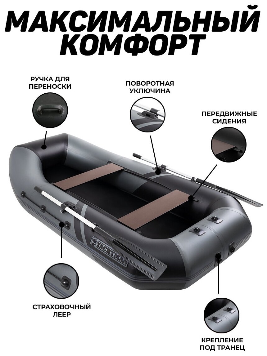 Купить Надувная лодка ПВХ с усилением YACHTMAN 260 M графит-черный