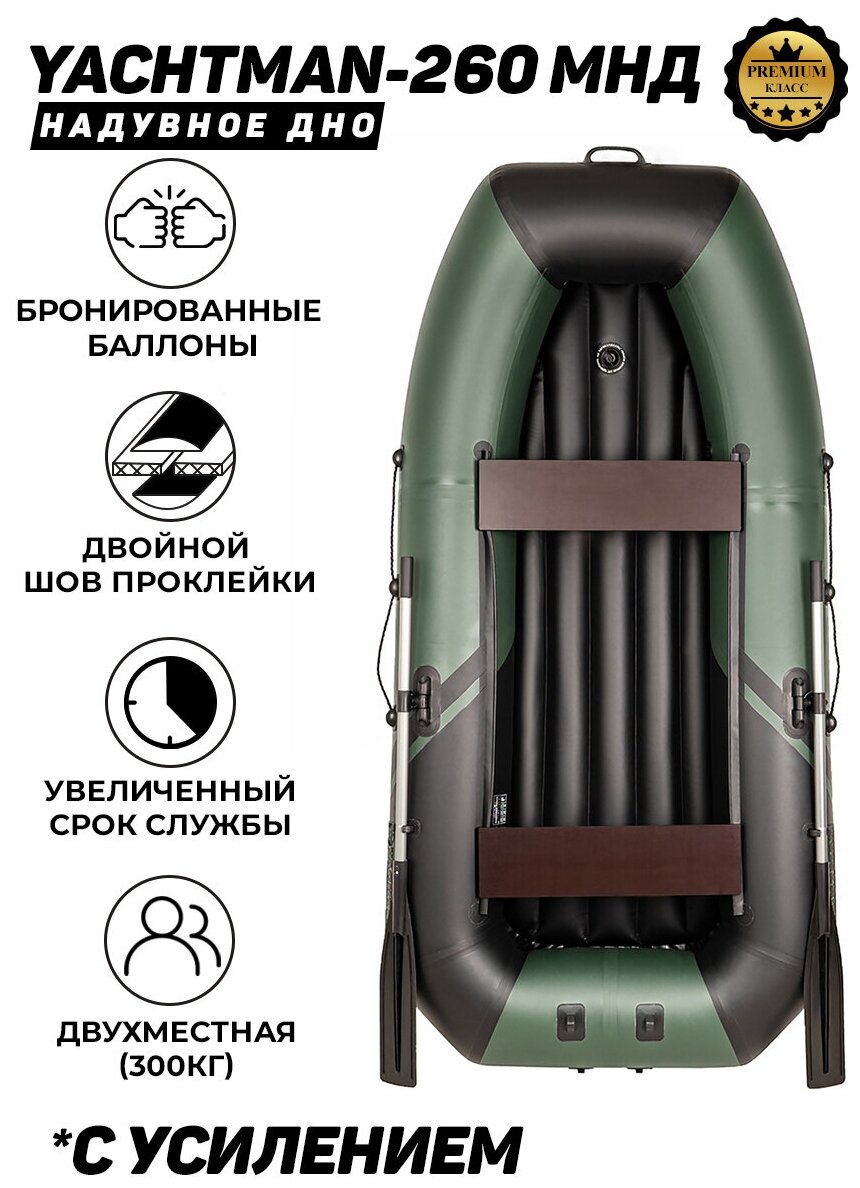 YACHTMAN-260 МНД надувное ДНО зеленый-черный лодка ПВХ с усилением интересное: