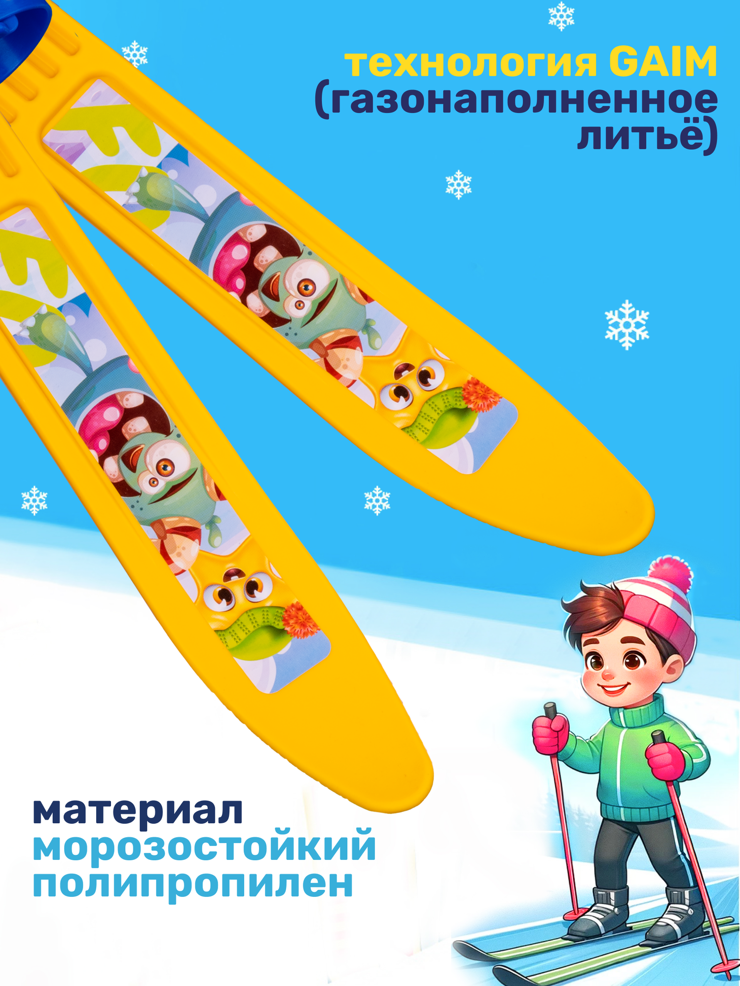 Олимпик Лыжи детские "Лыжики пыжики" Ручки, креп. мягкое пластик., с палками стеклопластик (75/75 см)