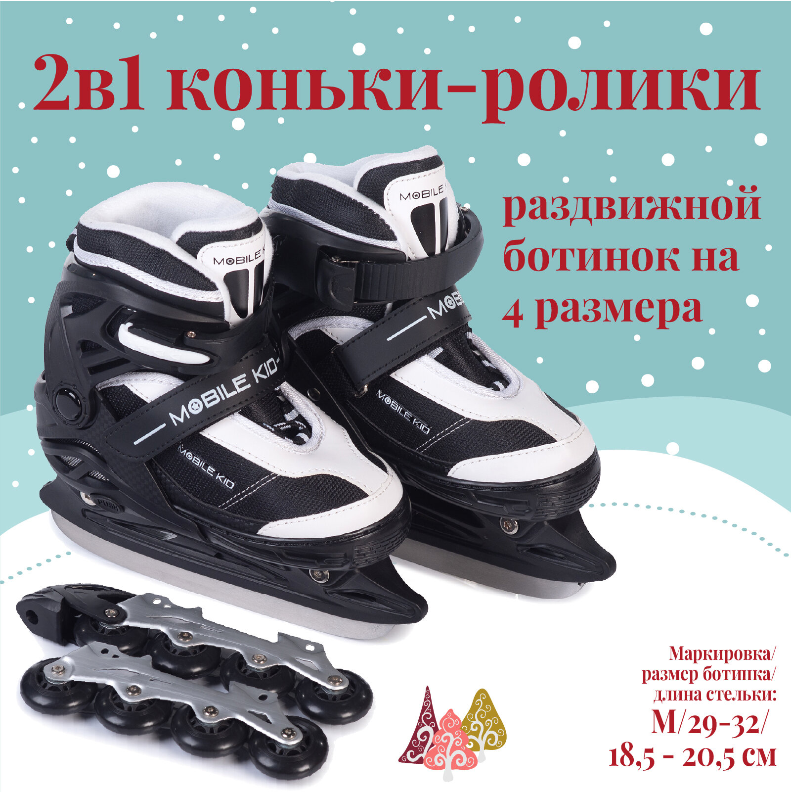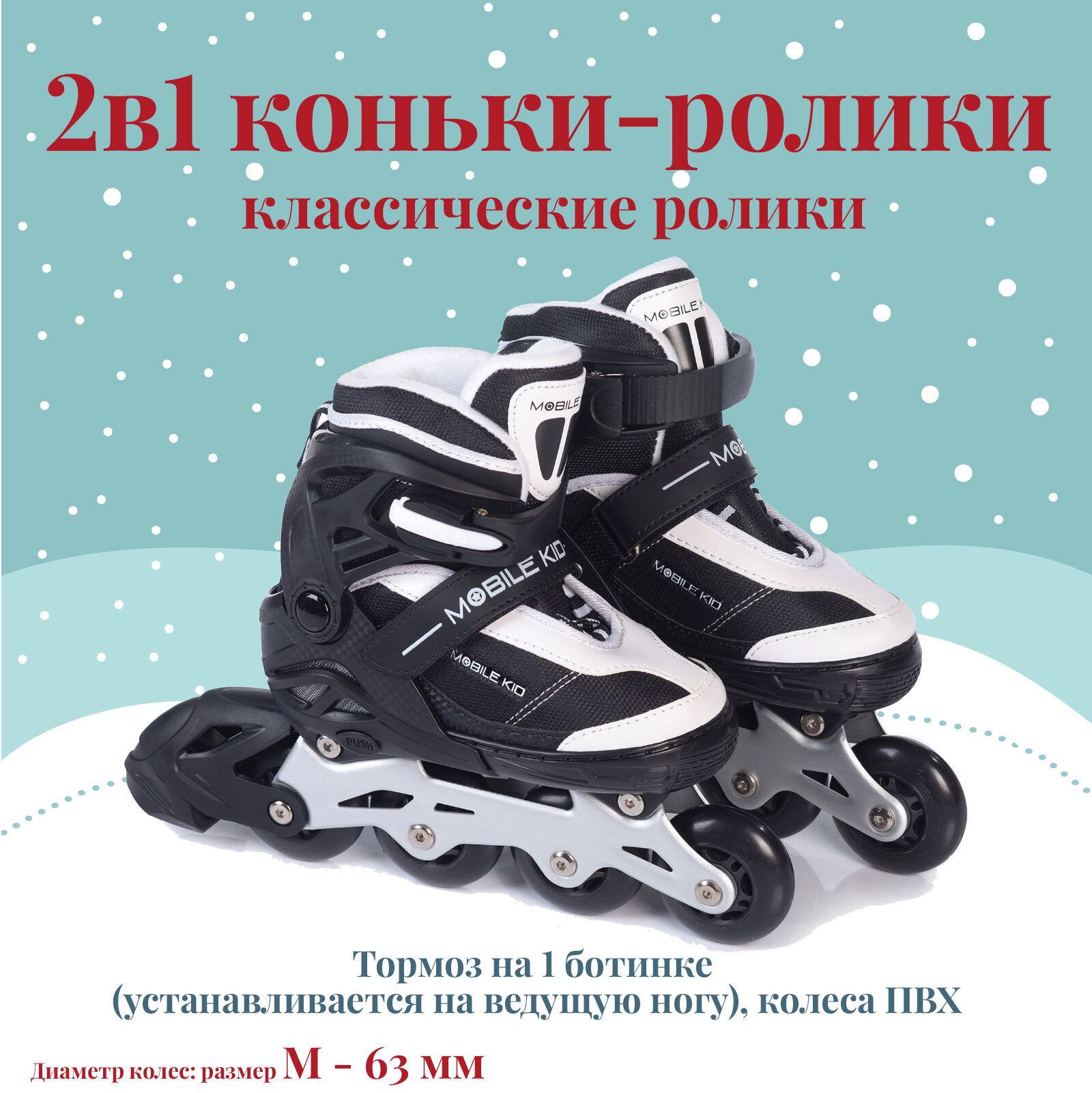 СохранитьРаздвижные коньки-ролики MOBILE KID Uni Skate (2 в 1), размер M (BLACK WHITE) интересное: