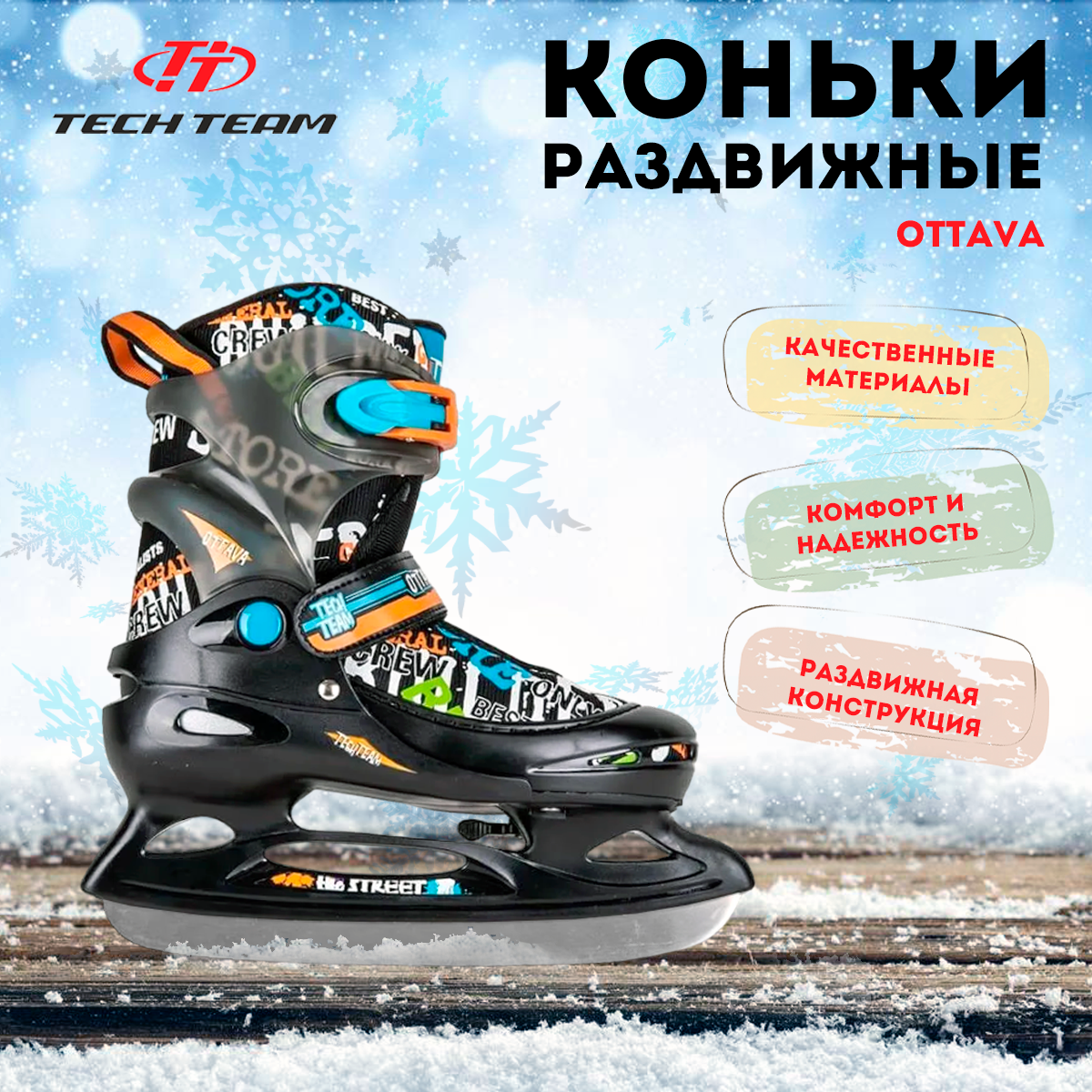 Раздвижные ледовые коньки TechTeam Ottava Черные 38-41