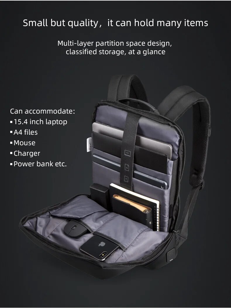 Рюкзак мужской городской дорожный маленький 10л для ноутбука 15.4, планшета Kingsons KS3210W Черный с USB зарядкой тканевый для взрослых и подростков интересное: