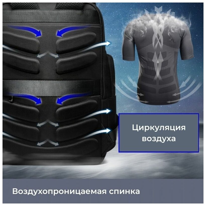 Рюкзак мужской городской дорожный 28л для ноутбука 15.6 Bopai Business 751-007301 Черный с USB зарядкой