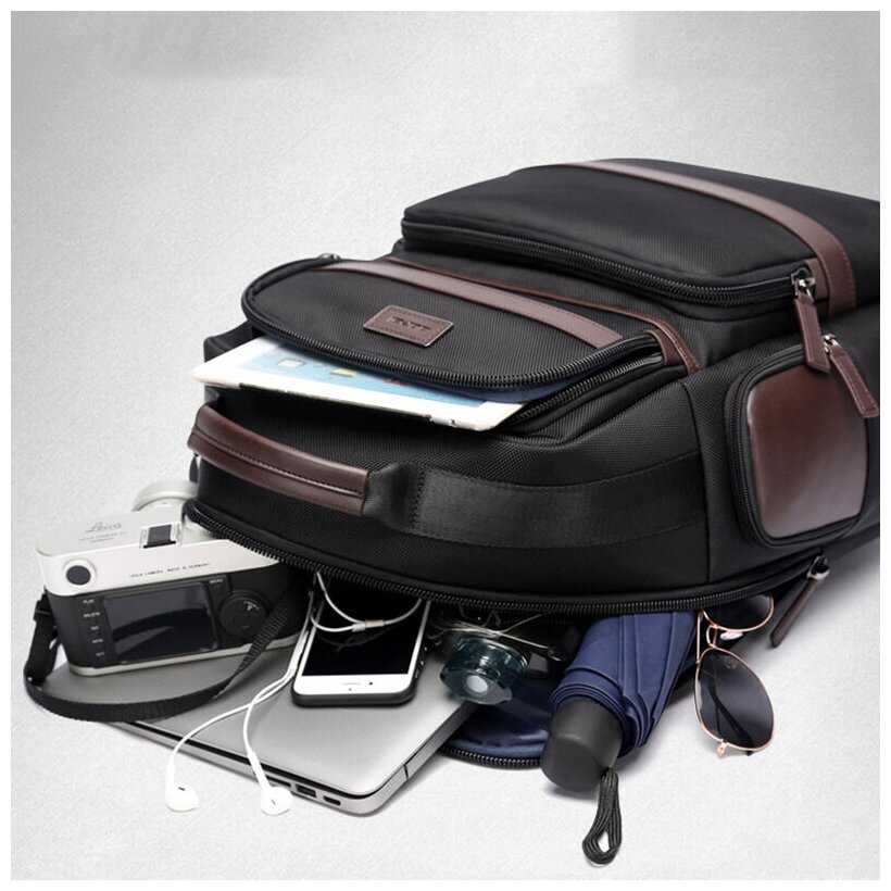 Рюкзак городской дорожный Bopai Business большой 28л для ноутбука 15.6", тканевый, влагостойкий, молодежный, с USB портом, черный