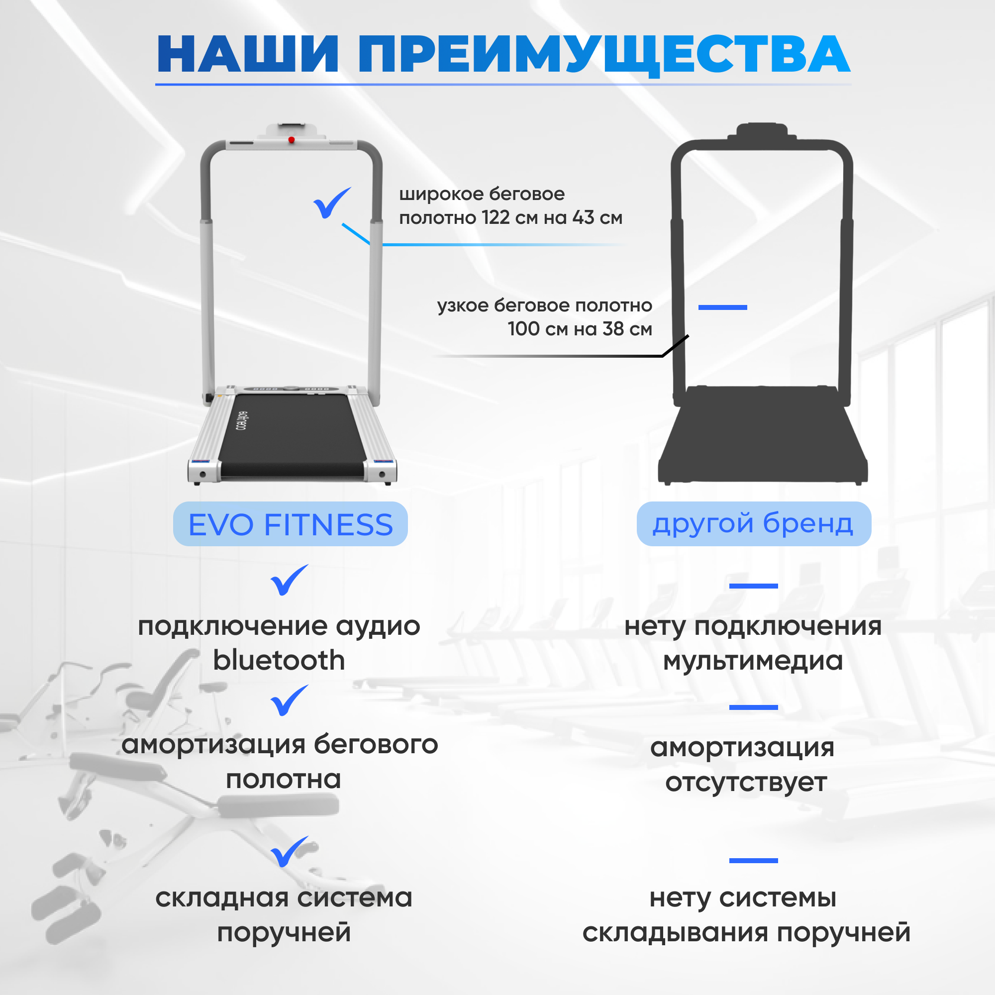 Беговая дорожка электрическая EVO FITNESS Blade Plus интересное: