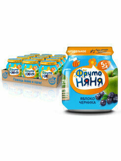 Пюре ФрутоНяня яблоко и черника, с 5 месяцев, 100 г, 12 шт.