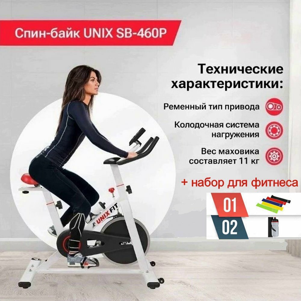Купить Велотренажер Спин-байк UNIXFIT SB-460P + набор для фитнеса