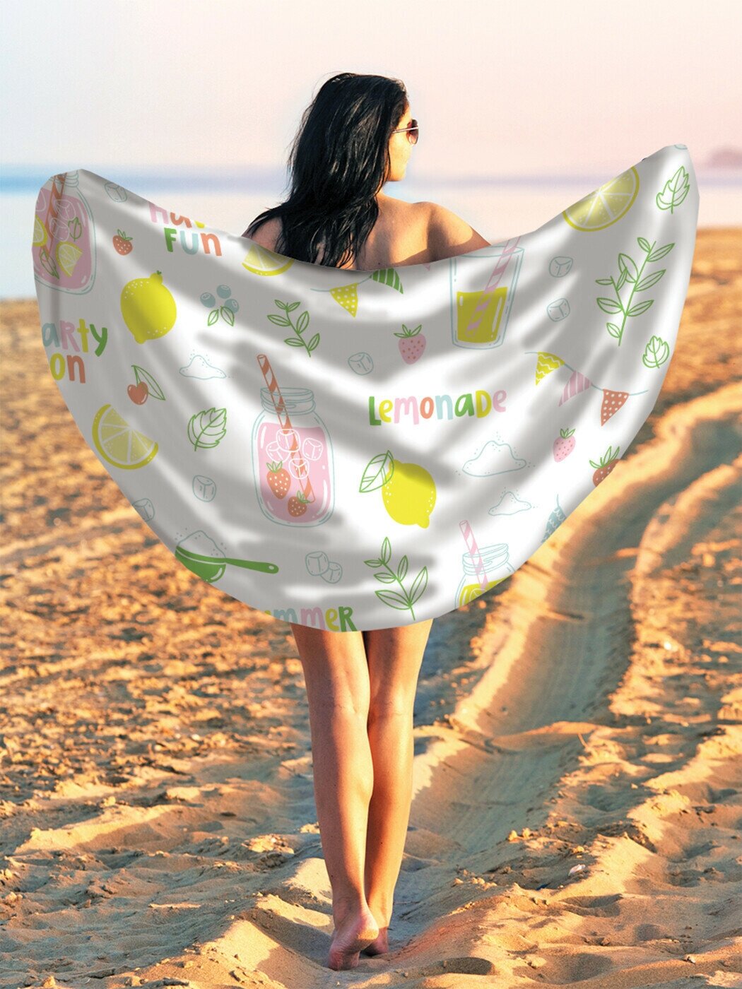 Парео и Пляжный коврик JoyArty "Лимонад на пляже", трикотаж 150 см