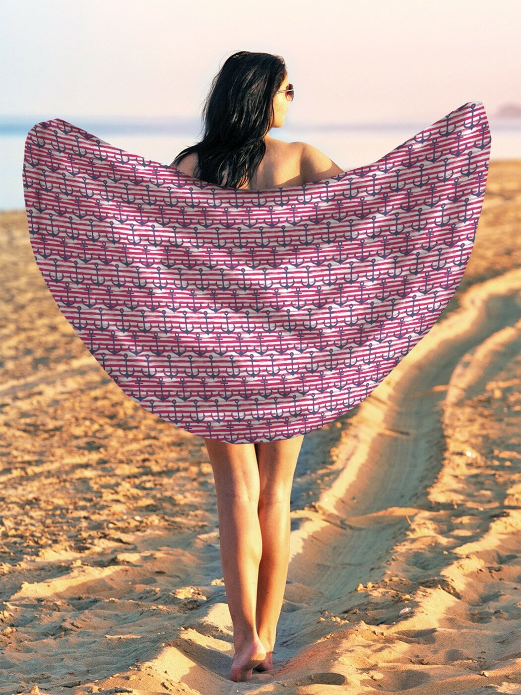 Парео и Пляжный коврик JoyArty "Якоря на полосках гранж", трикотаж 150 см интересное: