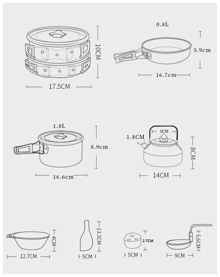 Купить Набор походной посуды из 8 предметов, алюминиевый сплав