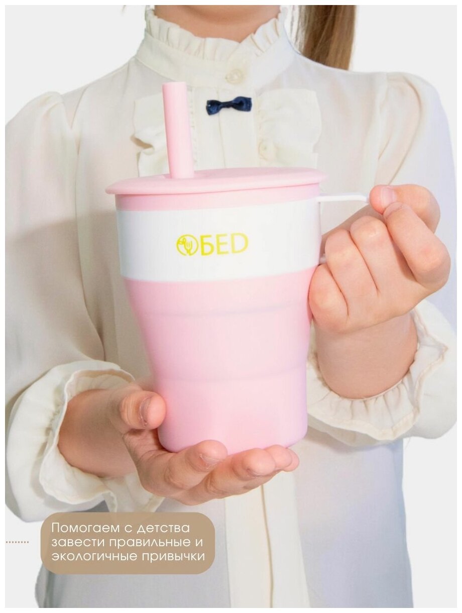 Кружка для чая с крышкой и трубочкой складная силиконовая, розовая, 473 мл, ОБЕD