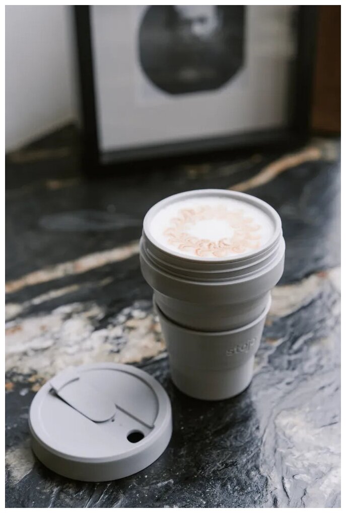 Многоразовый складной стакан STOJO с крышкой для кофе с собой из пищевого силикона,Кружка для кофе 355 мл, цвет Steel