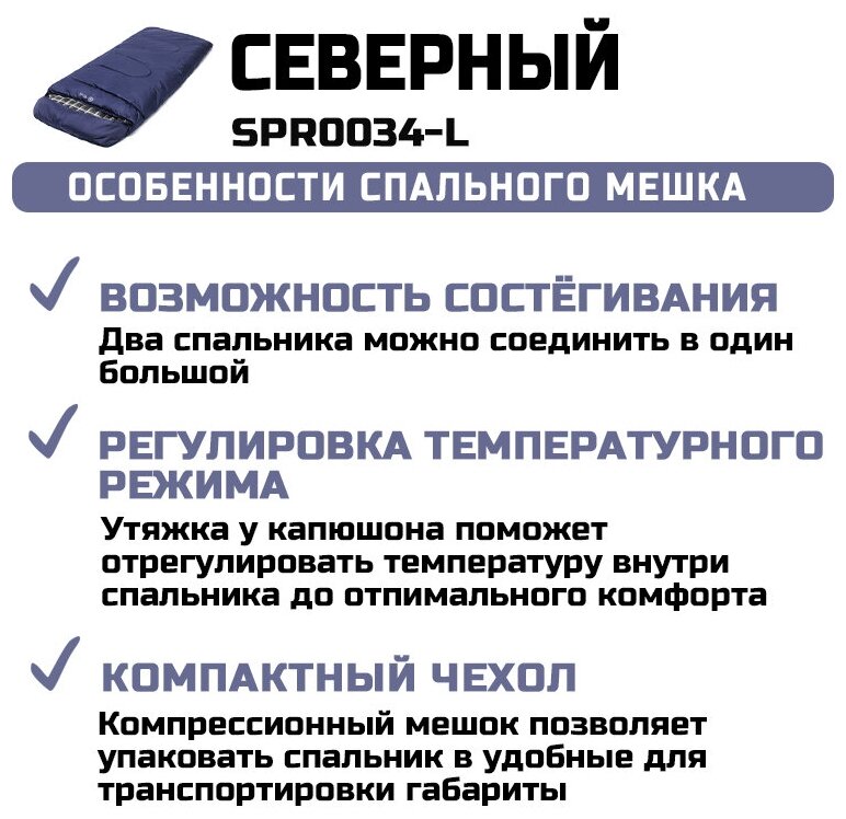 Спальный мешок одеяло Prival Северный синий, t extr -24 °С, 220х95, молния слева интересное: