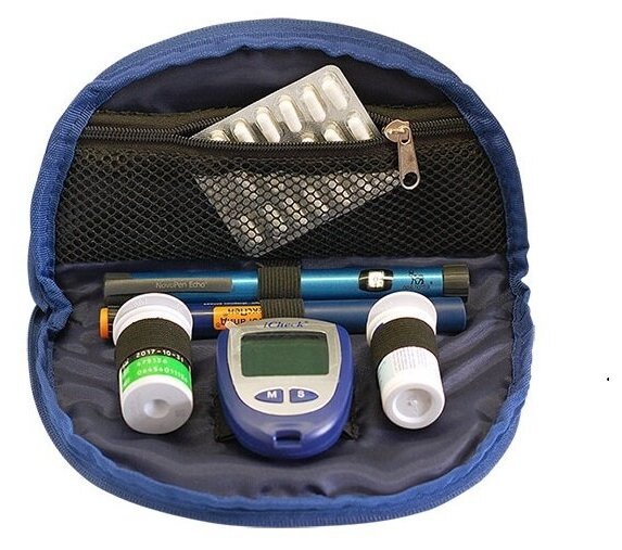 Но это сугубо индивидуально, ведь у всех разные по размерам глюкометры. А в остальном очень довольны - сумка противоударная и похоже, что термозпщитная - внутри есть прослойка. Это очень удобно. И радует большое количество резиночек для удержания всего, а также карман на молнии для мелочей, что чрезвычайно удобно. Размер небольшой, как раз ребёнку в рюкзак |