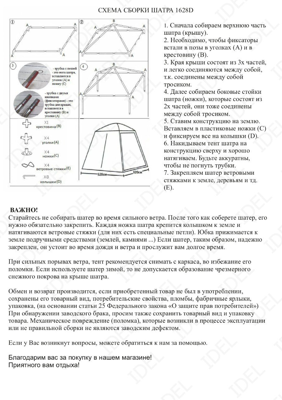 Ниже Вы можете прочитать отзывы на Палатка шатер беседка 1628D, ознакомится с подробными характеристиками, посмотреть интересные обзоры и фотографии на Палатка шатер беседка 1628D.
