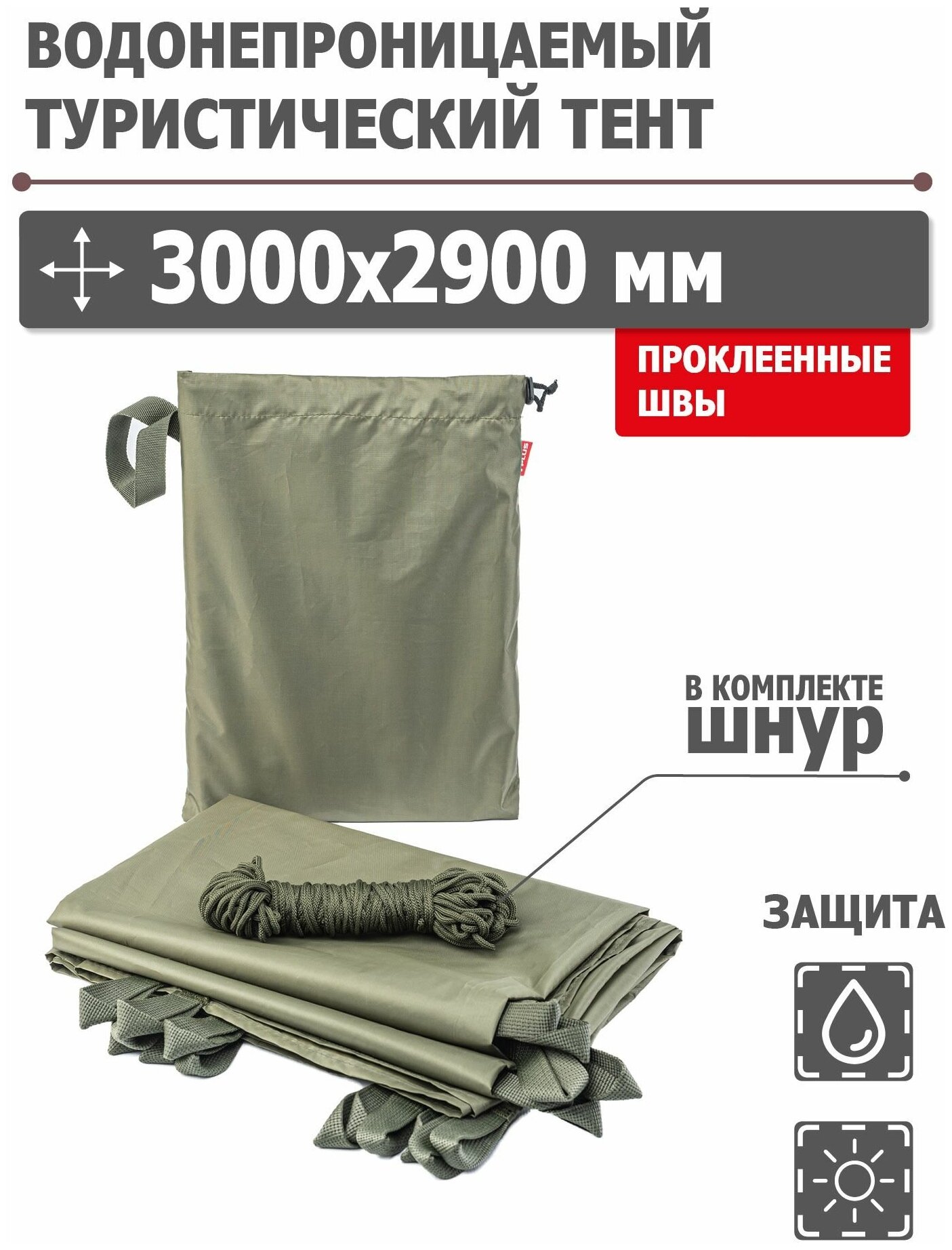Тент туристический 3000x2900 мм водонепроницаемый с проклеенными швами (оксфорд 210, олива), Tplus интересное: