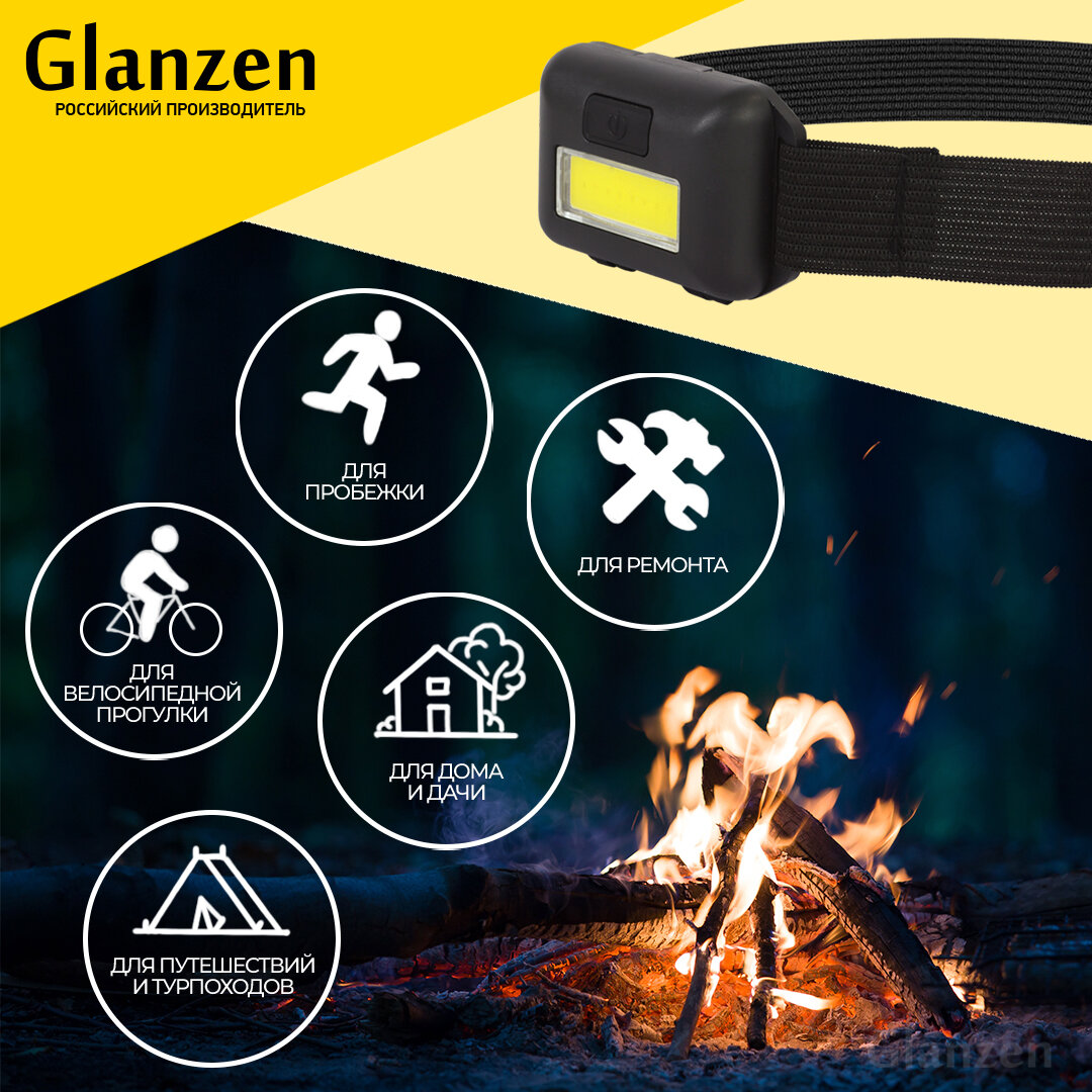 Светодиодный налобный фонарь 3ААА GLANZEN 2Вт UFL-0080-A001 интересное: