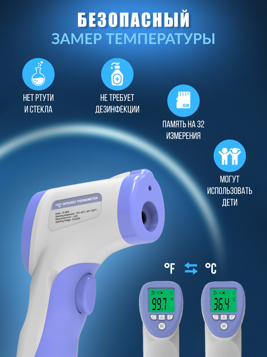 Бесконтактный инфракрасный цифровой термометр DT-8826 интересное: