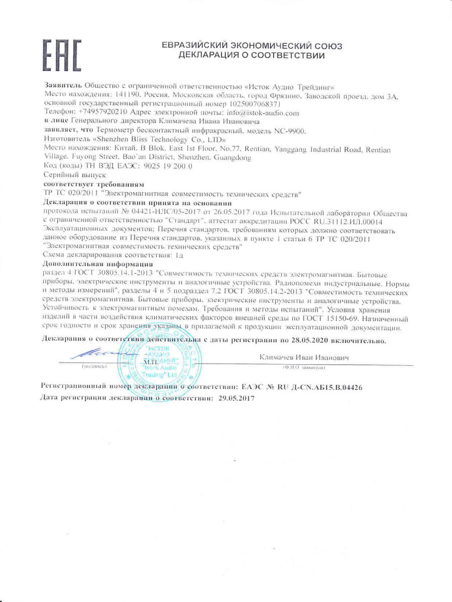Исток-аудио бесконтактный инфракрасный термометр (пирометр, говорящий) NC-9900