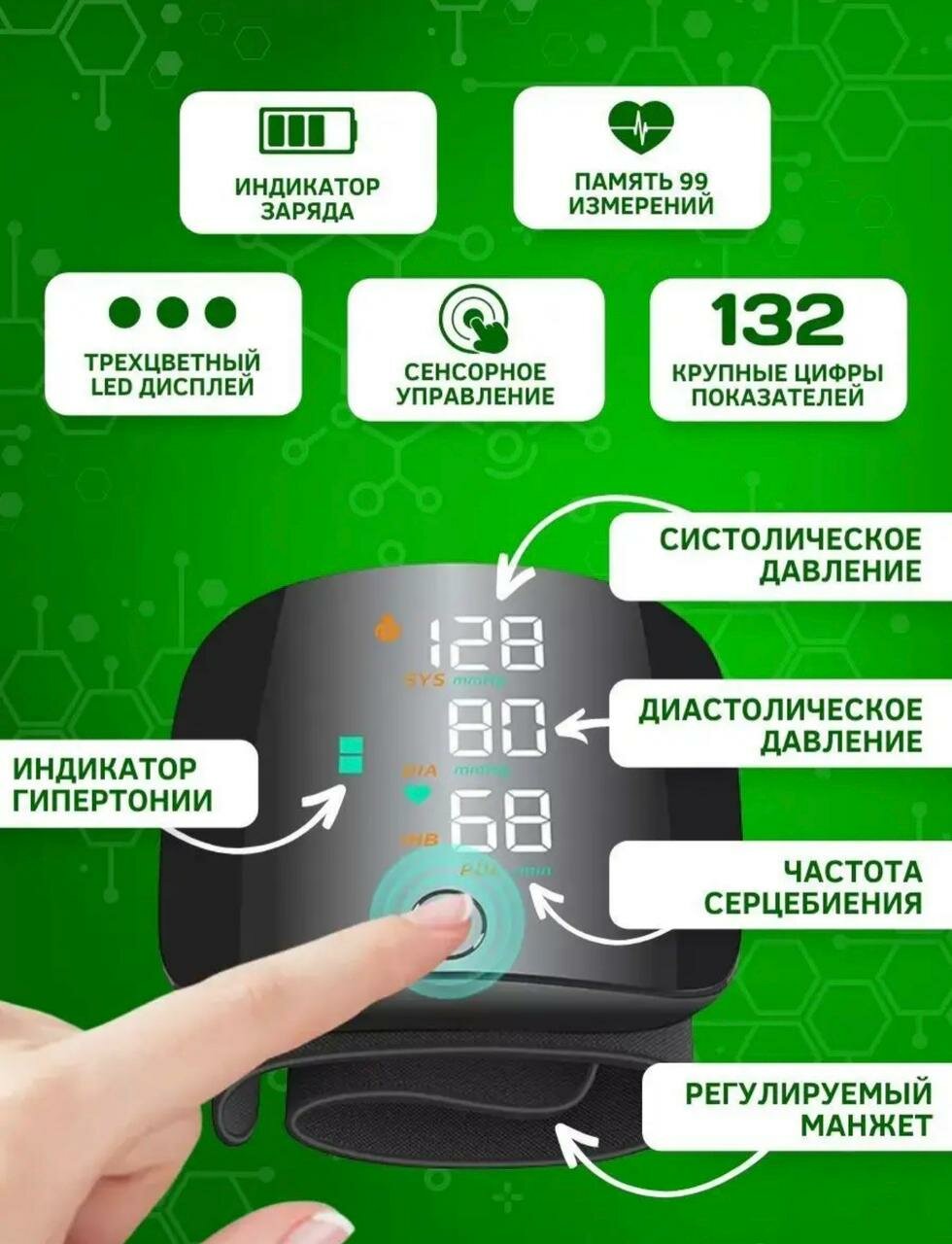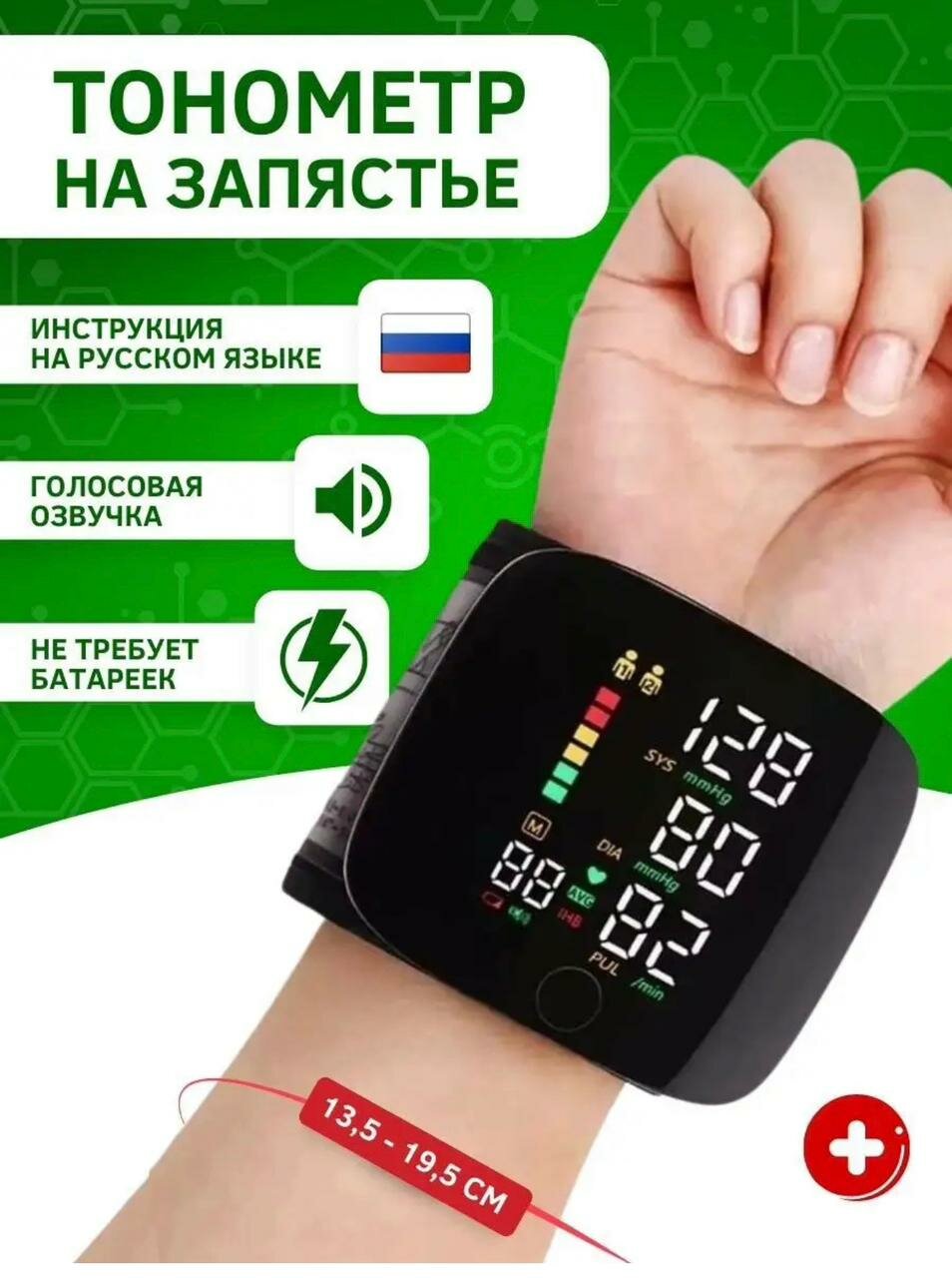 Тонометр электронный на запястье/память измерений/голосовое оповещение/черный интересное: