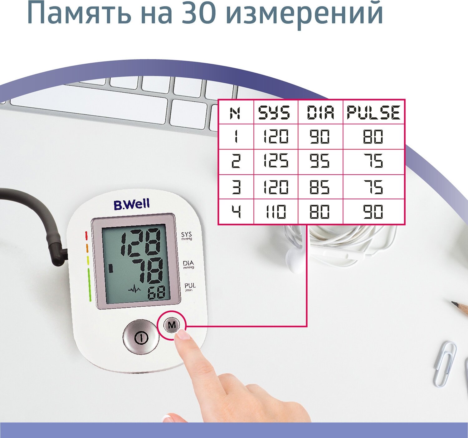 Тонометр B.Well PRO-35 + конусная манжета 22-32см, память на 30 измерений, шкала давления интересное: