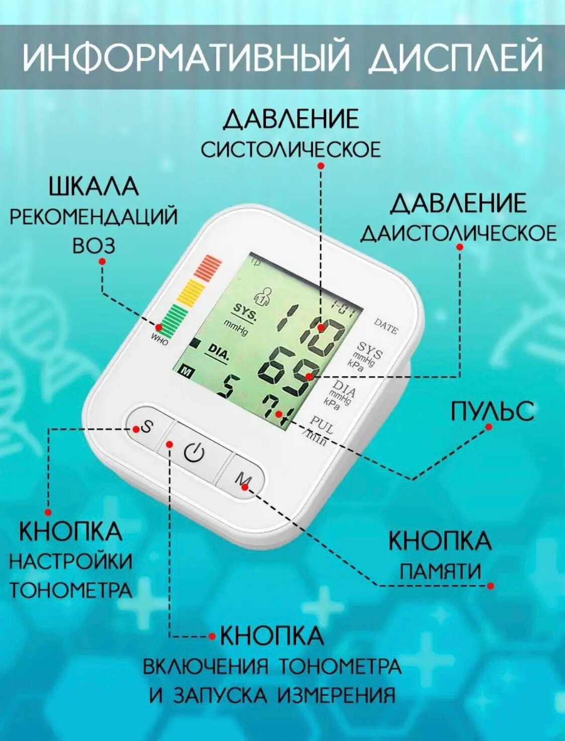 | Плюсы: | компактный, интуитивно -понятный, есть на манжете картинки, объясняющие как пользоваться |