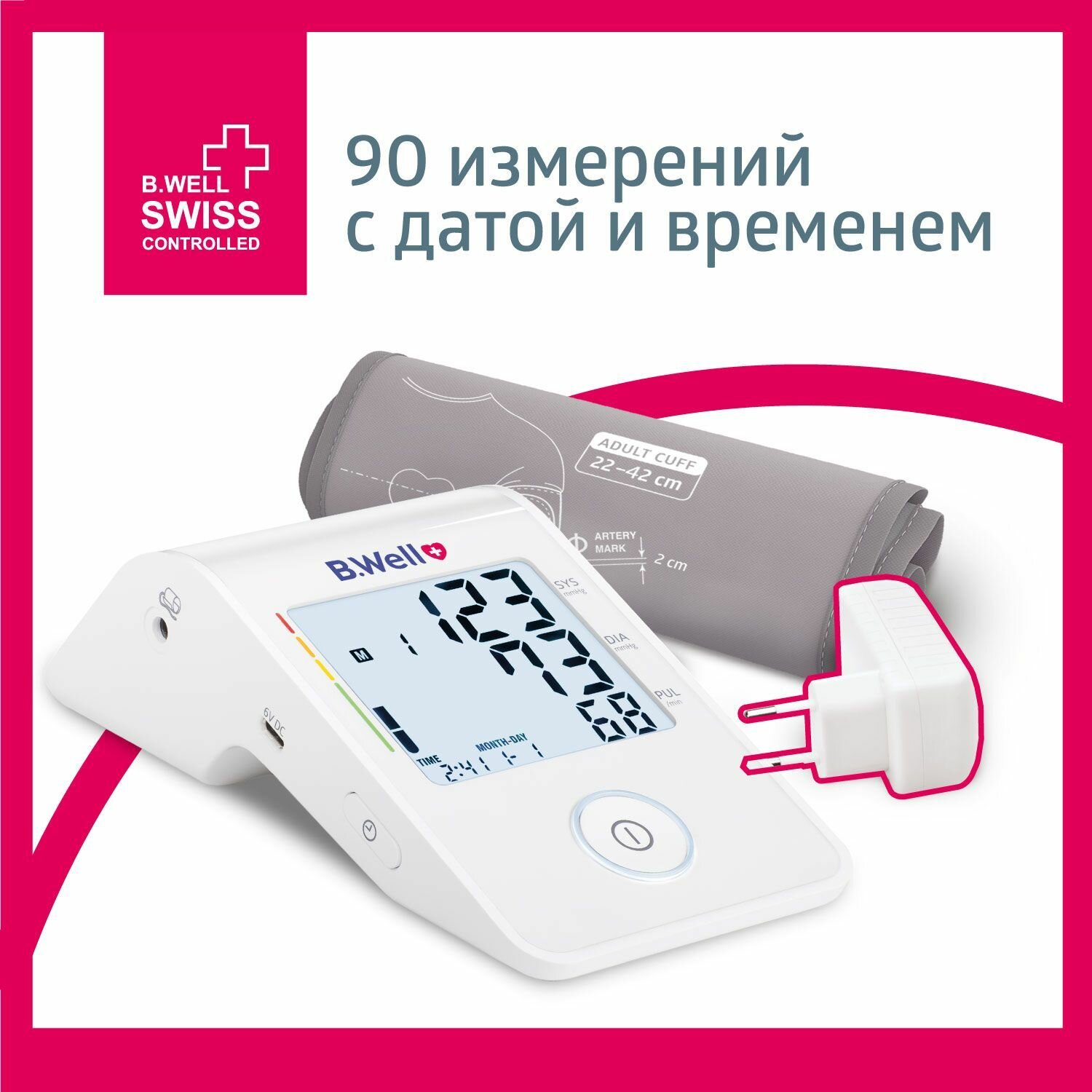 Тонометр автоматический с адаптером B.Well MED-53 с универсальной анатомичной манжетой 22-42 см