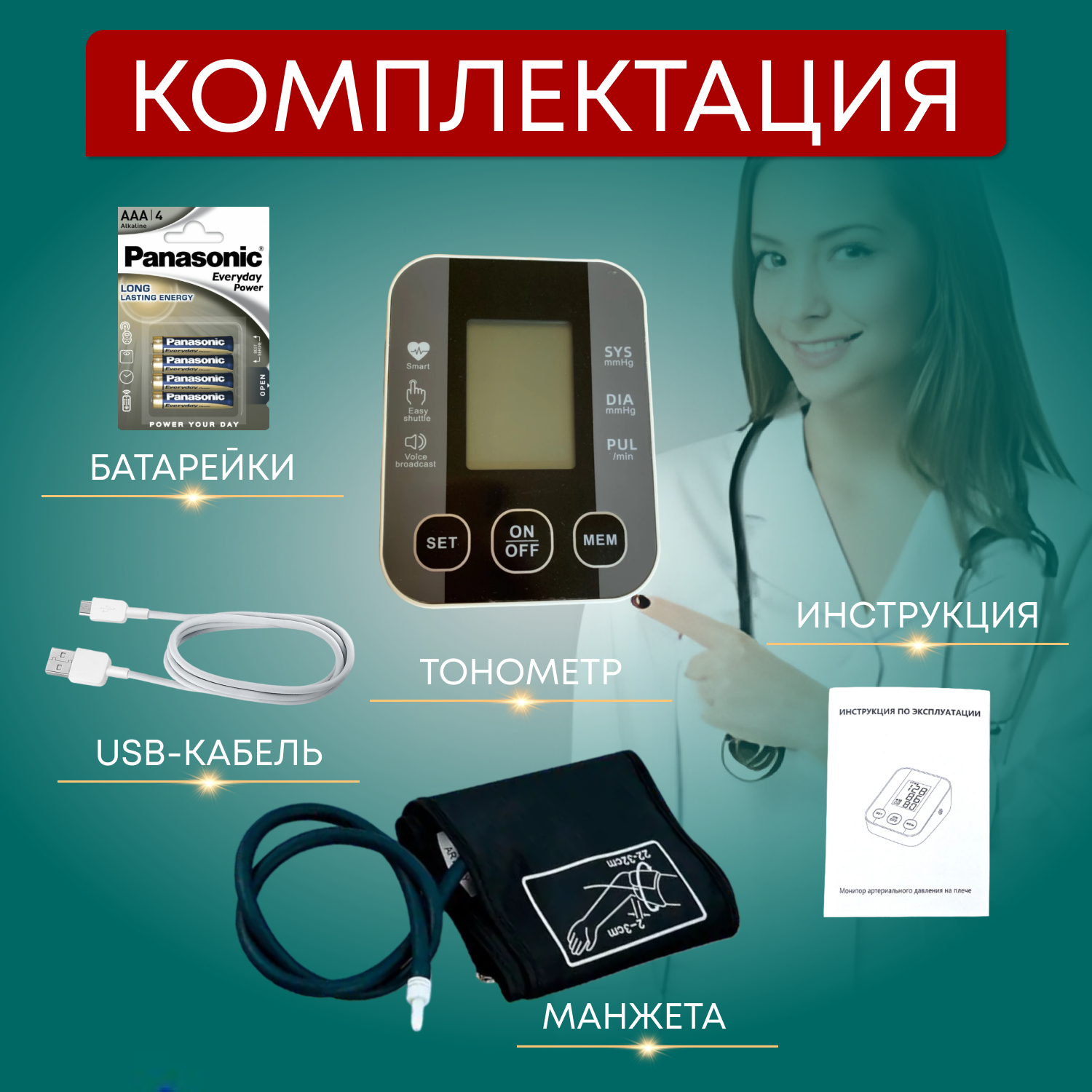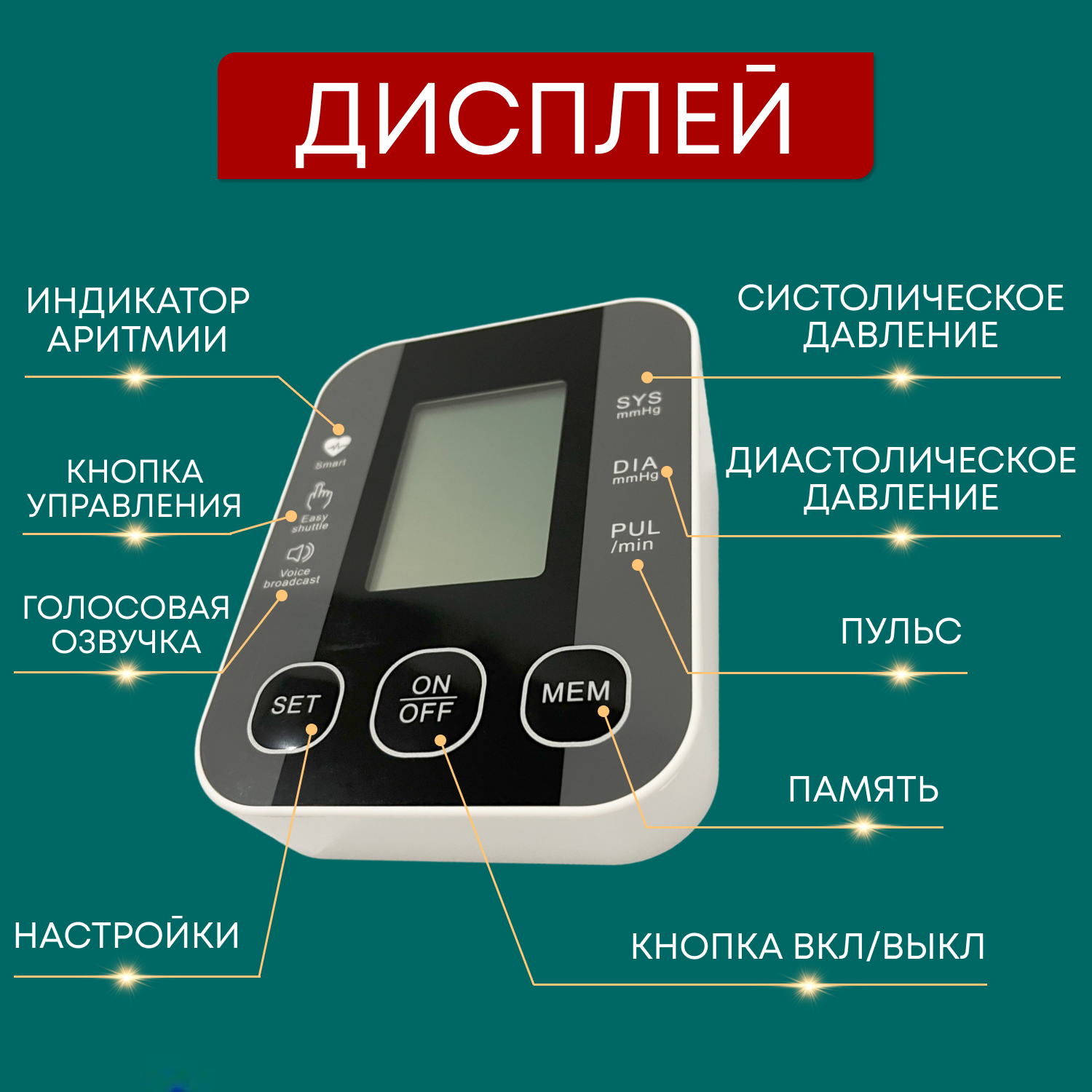 Тонометр автоматический Electronic / Тонометр на плечо / Аппарат для измерения давления / Электронный тонометр / Индикатор аритмии интересное: