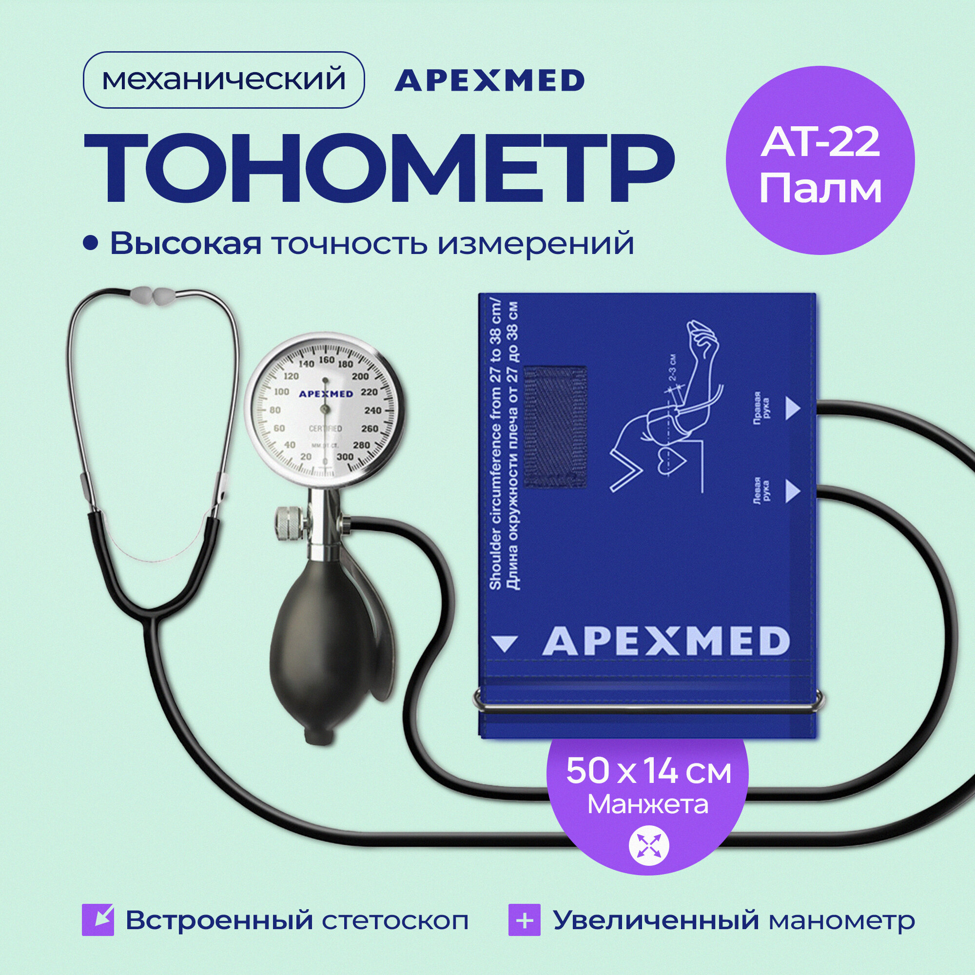 Тонометр механический Apexmed АТ-22 Палм, 27-38 см, со стетоскопом, измеритель давления