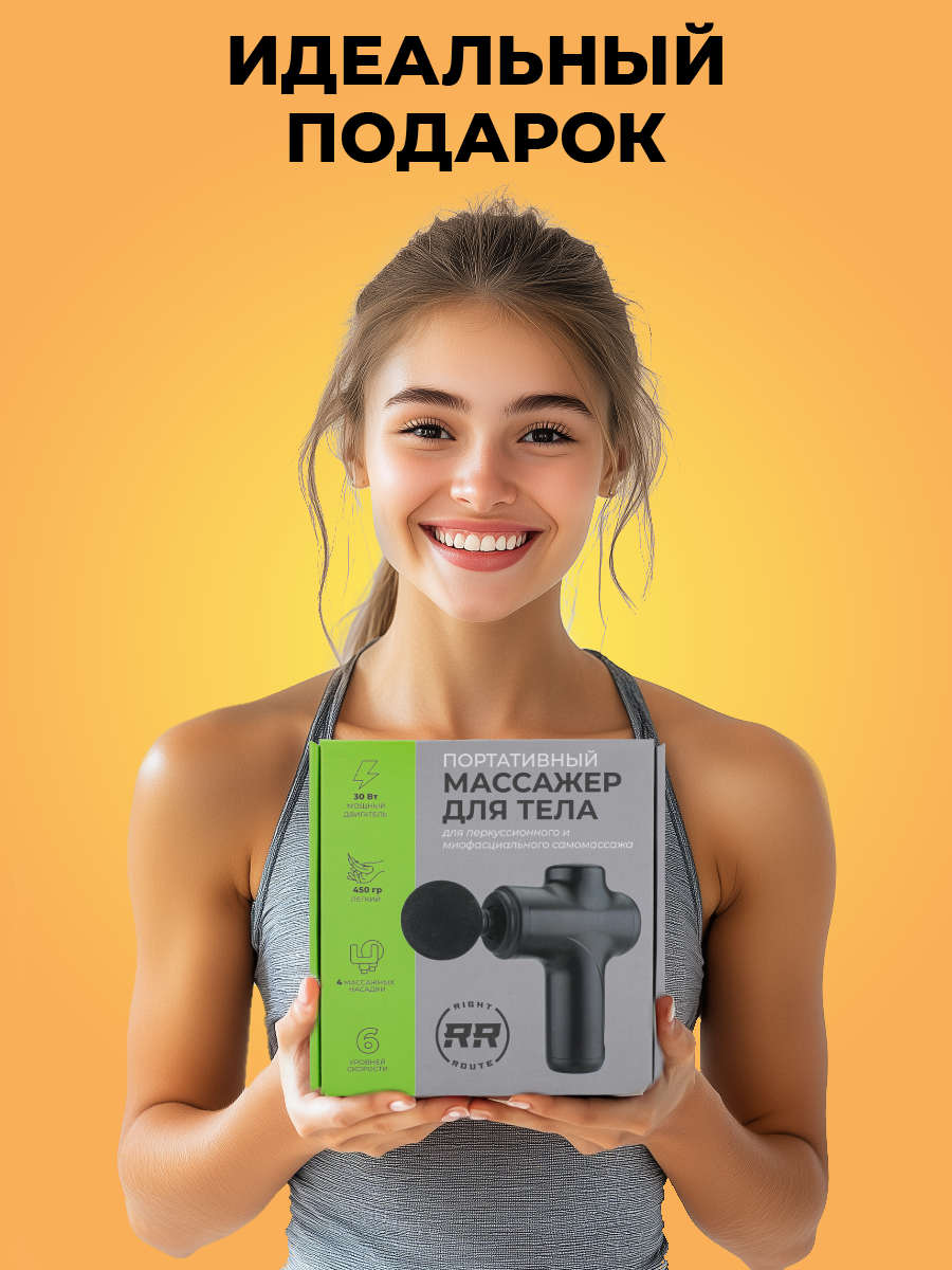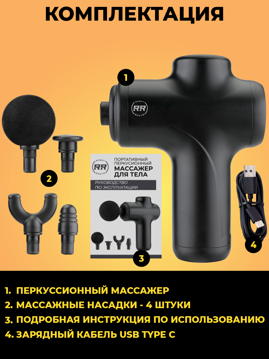 Массажер. Вибромассажер для тела Right Route. Портативный перкуссионный массажный пистолет интересное: