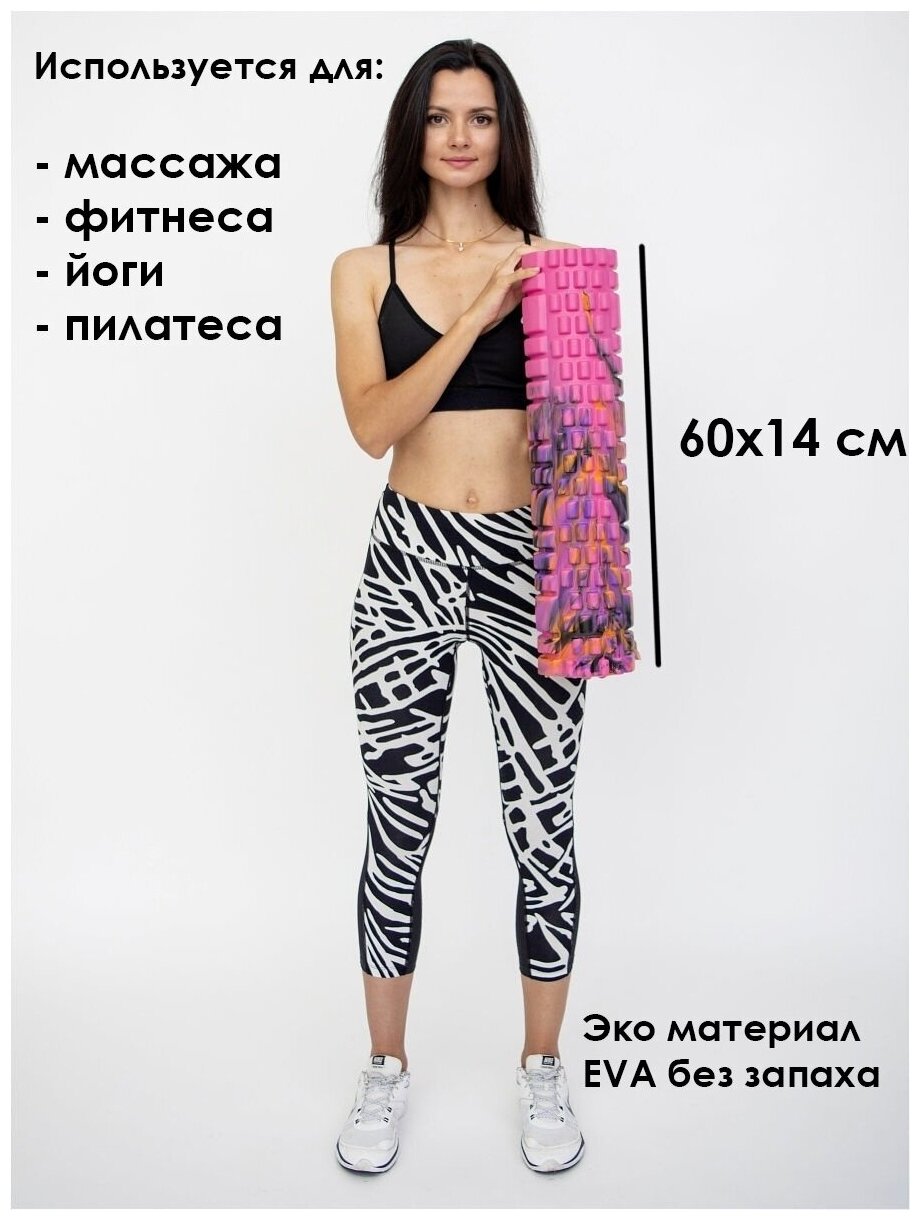Валик для фитнеса массажный 60х14см "Пестрый" розовый интересное:
