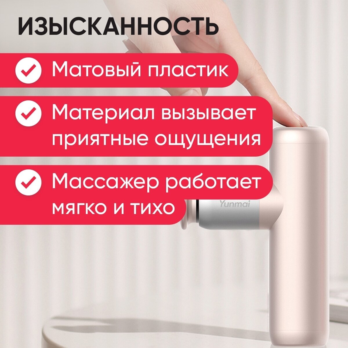 Перкуссионный массажер пистолет для тела, ног, шеи и головы YUNMAI Massage Gun Extra Mini MVFG-M281, розовый