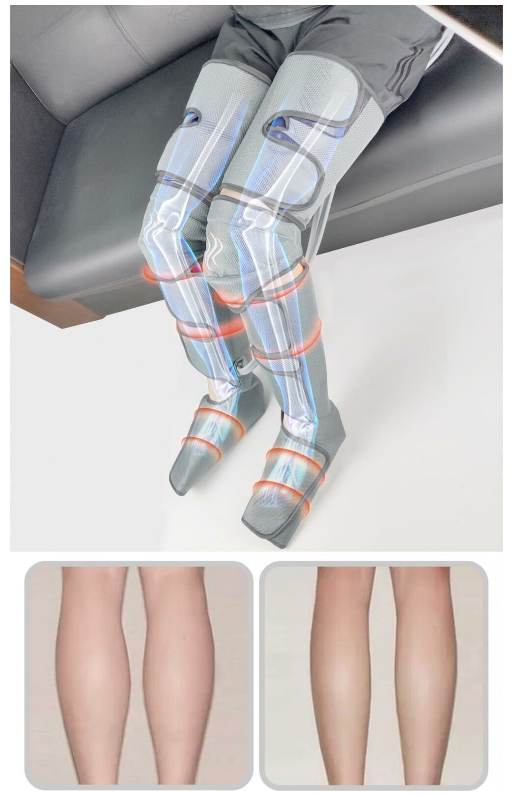 Муж подарил на день рождения. Размер, конечно, огромный, нога обворачивается полтора раза. Неудобно застёгивать, но не страшно. Из-за маленького размера ступни (36 р-р) они никогда не массируются. Воздух нагнетается выше пальцев.))