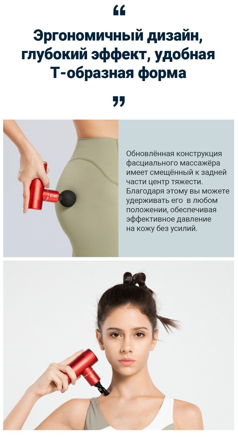 Купить Перкуссионный массажер, массажный пистолет для лица ног спины шеи тела SKG F3, красный